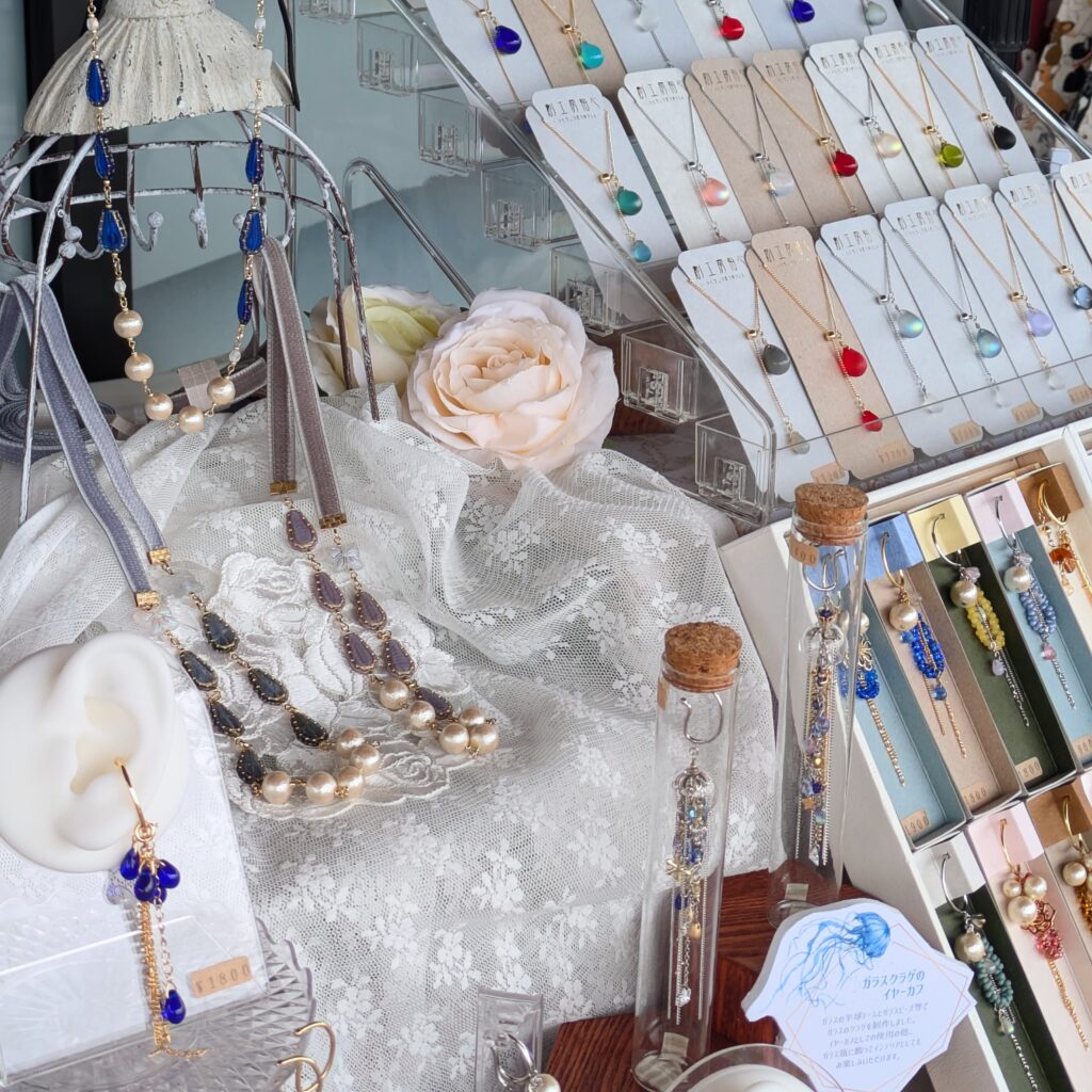 チェコガラスビーズを主に使用した、イヤーフック・イヤーカフなどのアクセサリーを中心に制作しています。