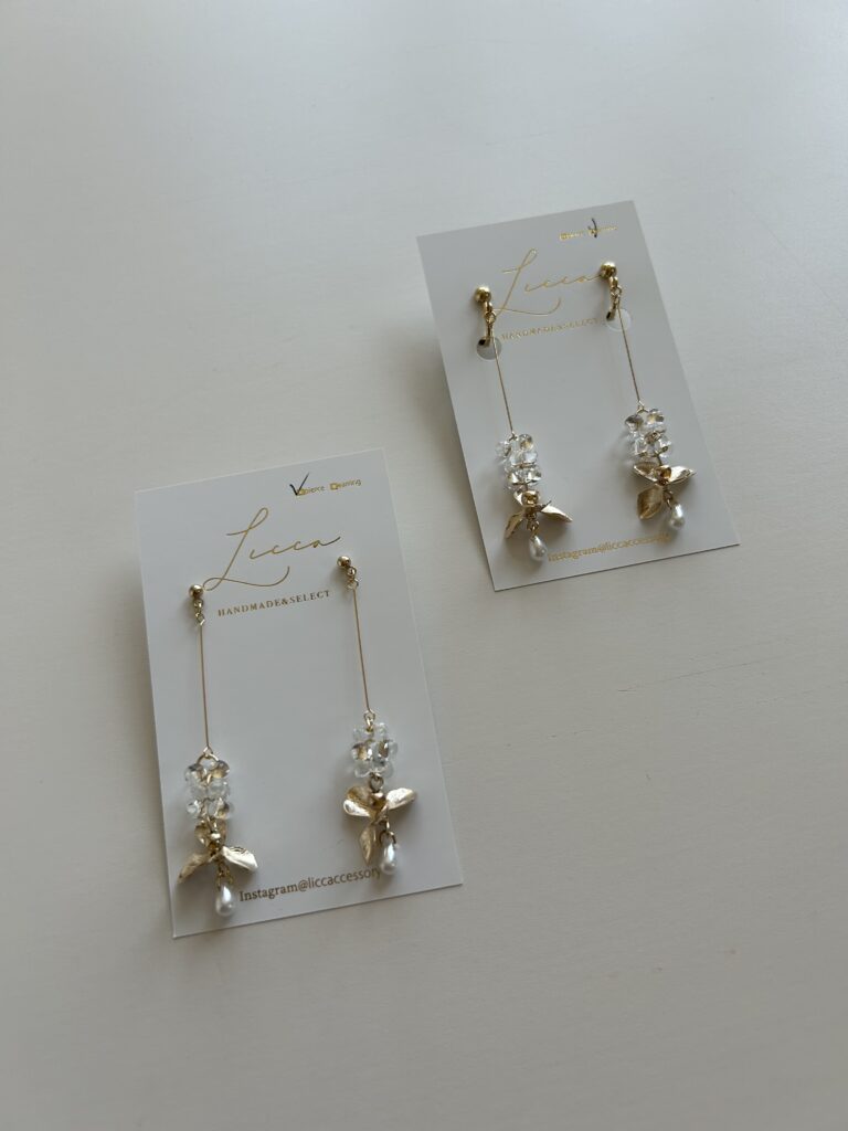 ハンドメイドのピアスとイヤリング、インポートリボンやボタンを使ったヘアアクセサリーを製作しています。
