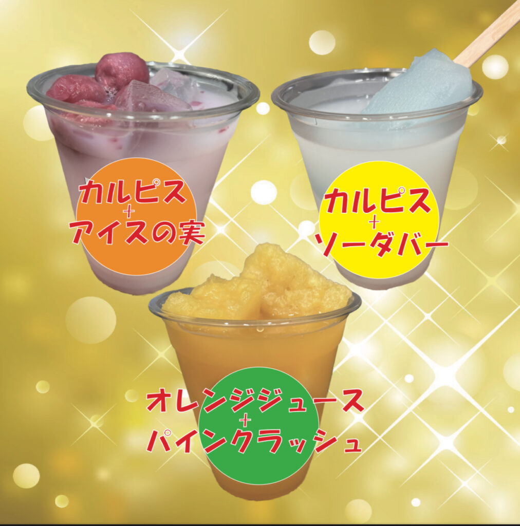 焼きそば・コロコロポテト・チーズフライ・パリパリウインナー・アレンジドリンク・ソフトドリンク・かき氷