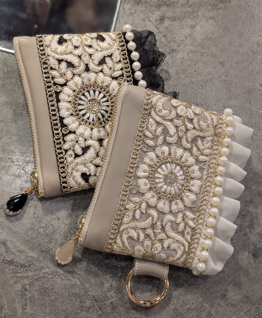 厳選したインド刺繍リボンを使用した、スマホショルダー(マルチショルダー)、ポーチ、バック、アクセサリー、ヘアアクセ、キッズ用アクセサリー、ヘアアクセ