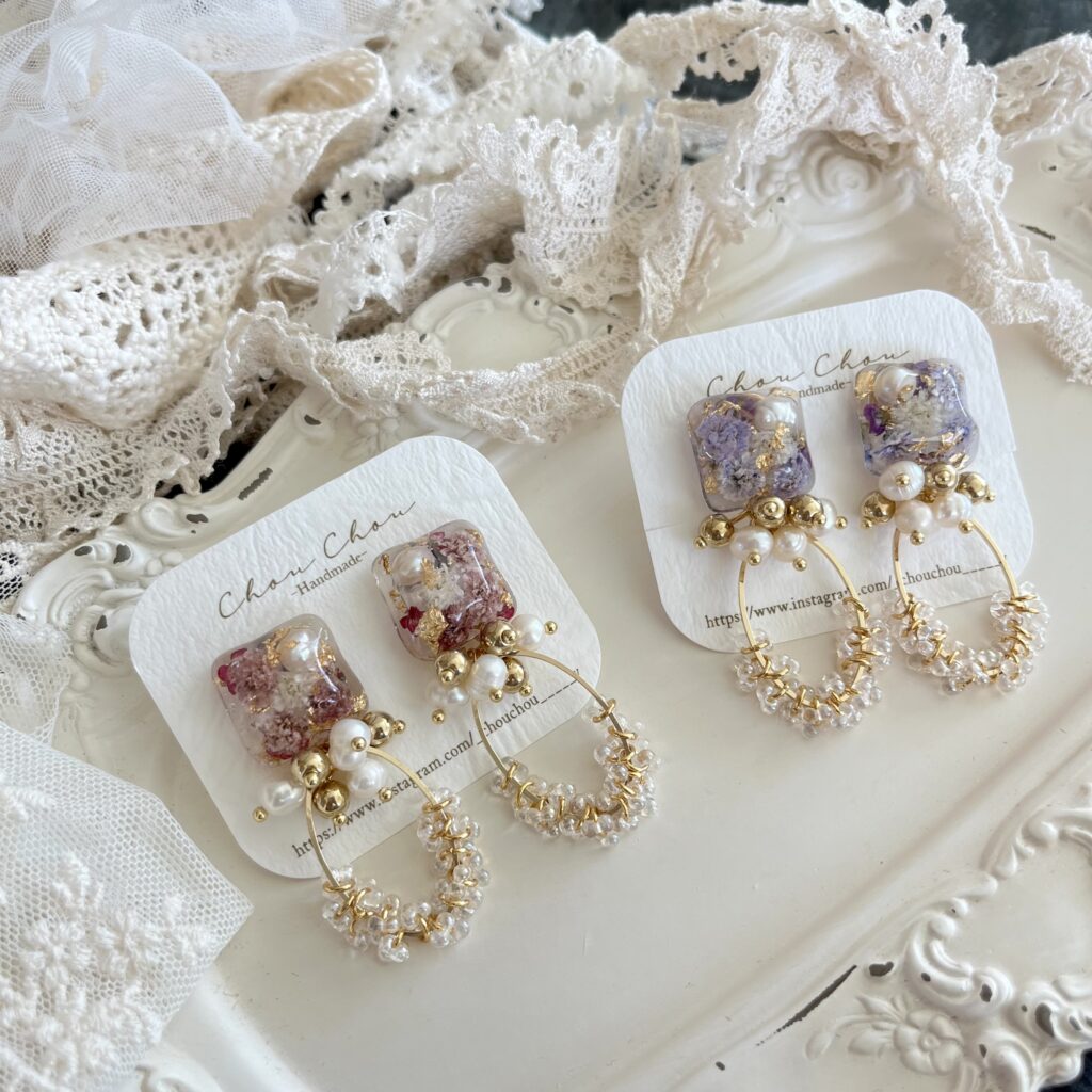 お花を使ったアクセサリーや雑貨、ドライフラワーアレンジ作品を