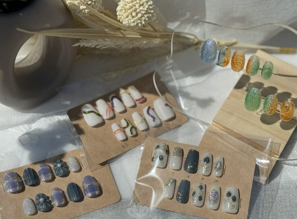 その場でサイズを測り自分で好きなデザインを選べるネイルチップをご用意しています!無料で簡単に測定できるので、ネイルチップを使ったことのない方も、普段ネイルできないけど興味のある方もぜひ遊びにきてください