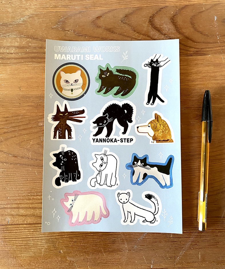オリジナル動物イラストのグッズ(シール、巾着、エコバッグ、キーホルダーなど)と