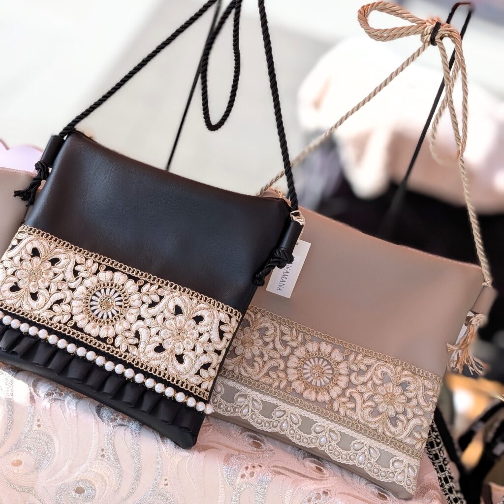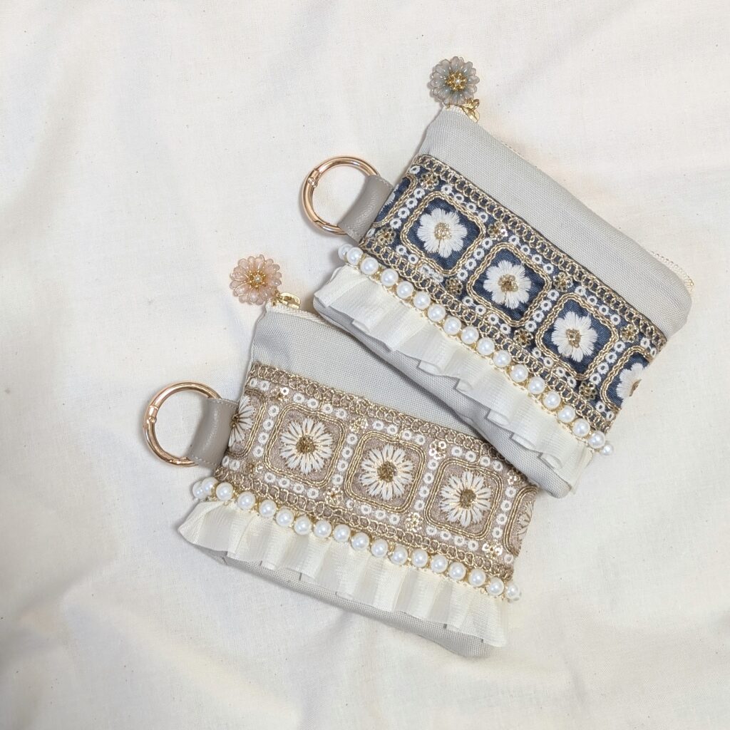 インド刺繍リボンを使用したスマホショルダー(マルチショルダー)ポーチ、バッグ、ヘアアクセ、アクセサリー、子供向けアクセサリー、ヘアアクセ