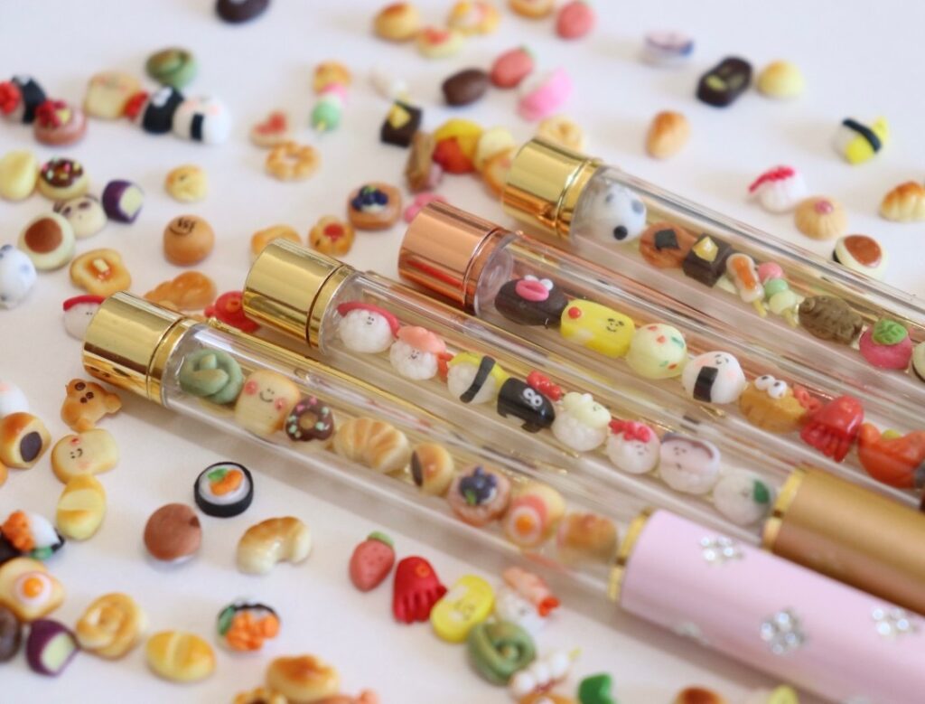 200種類以上の爪先サイズのミニチュアは全て手づくり!お好きなパーツを選んで貼って、裏面にはお名前も入ります。替芯タイプでずっと使えるお気に入りの一本を作りませんか?
