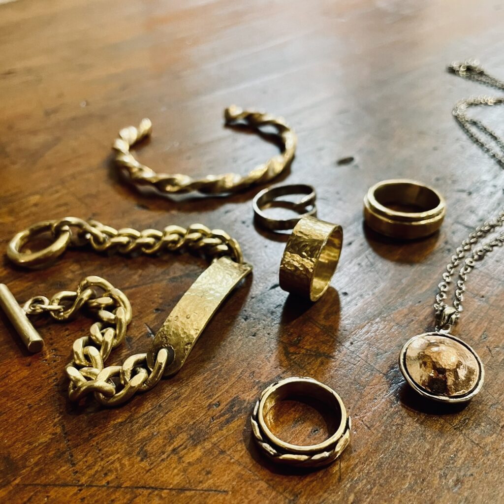 素材は真鍮をメインに白銅、洋白、アンティークコインを使用し、1点1点オールハンドメイドで仕上げています。