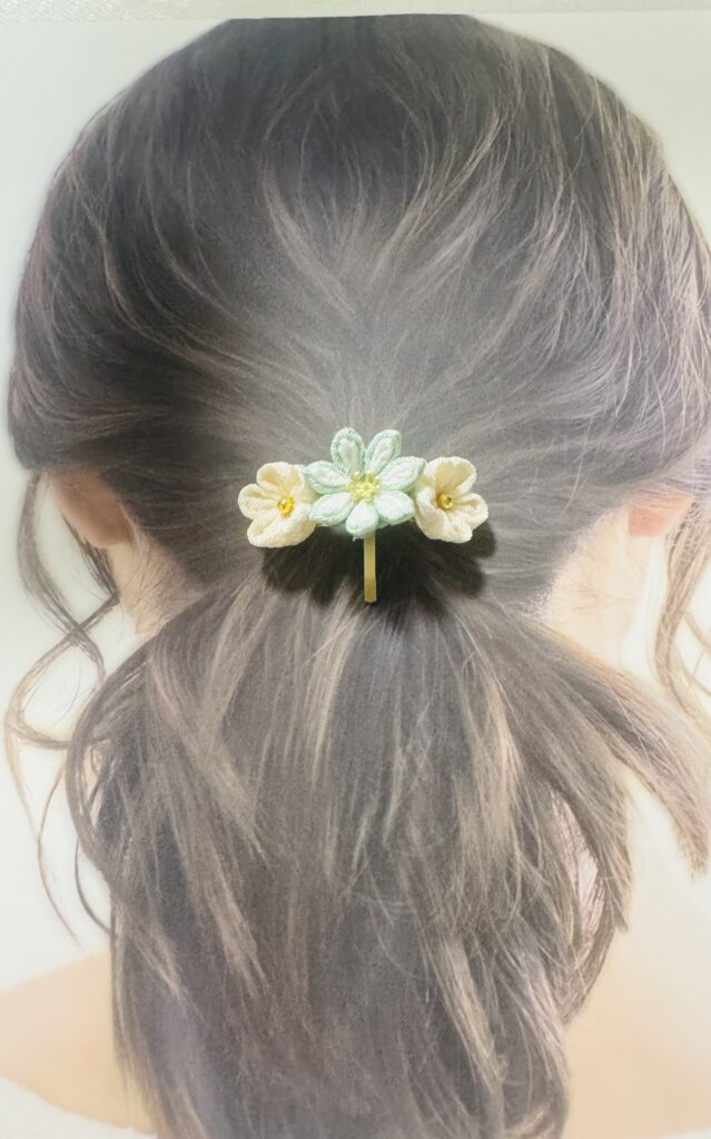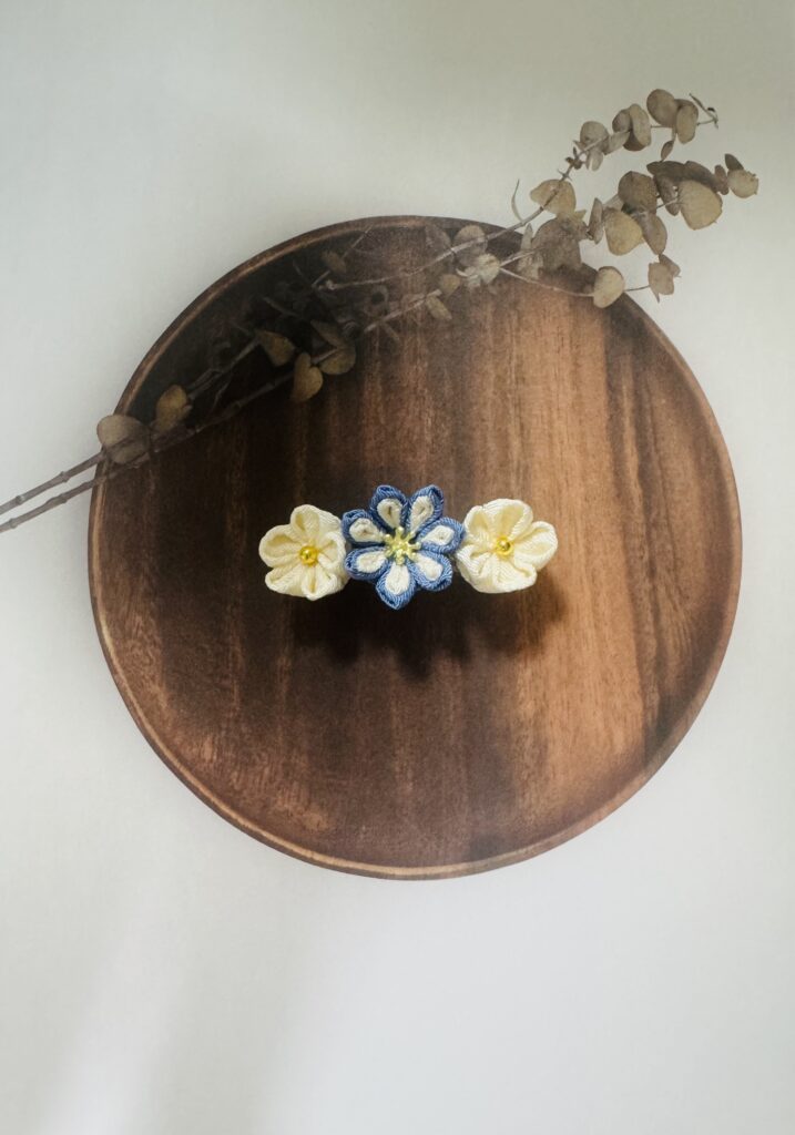 つまみ細工で製作したヘアアクセサリー、 造花のリース